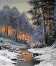 All my works are painted on a canvas in oils. Sometimes the palette knife is used.