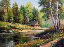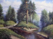 All my works are painted on a canvas in oils. Sometimes the palette knife is used.