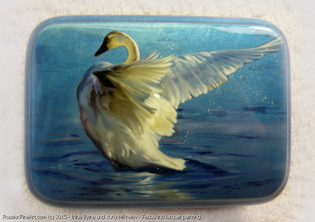 Swan - box, Fedoskino lacquer painting technique