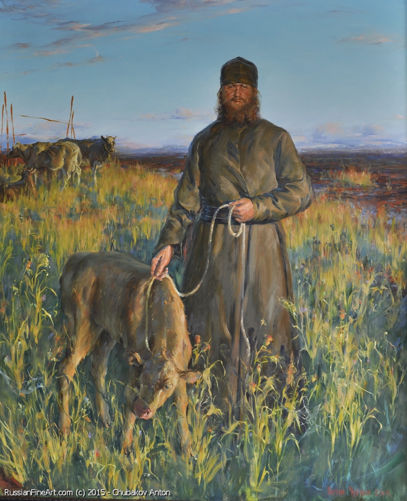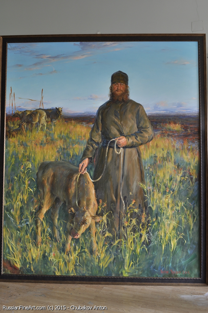 Monk With A Calf - oil, canvas