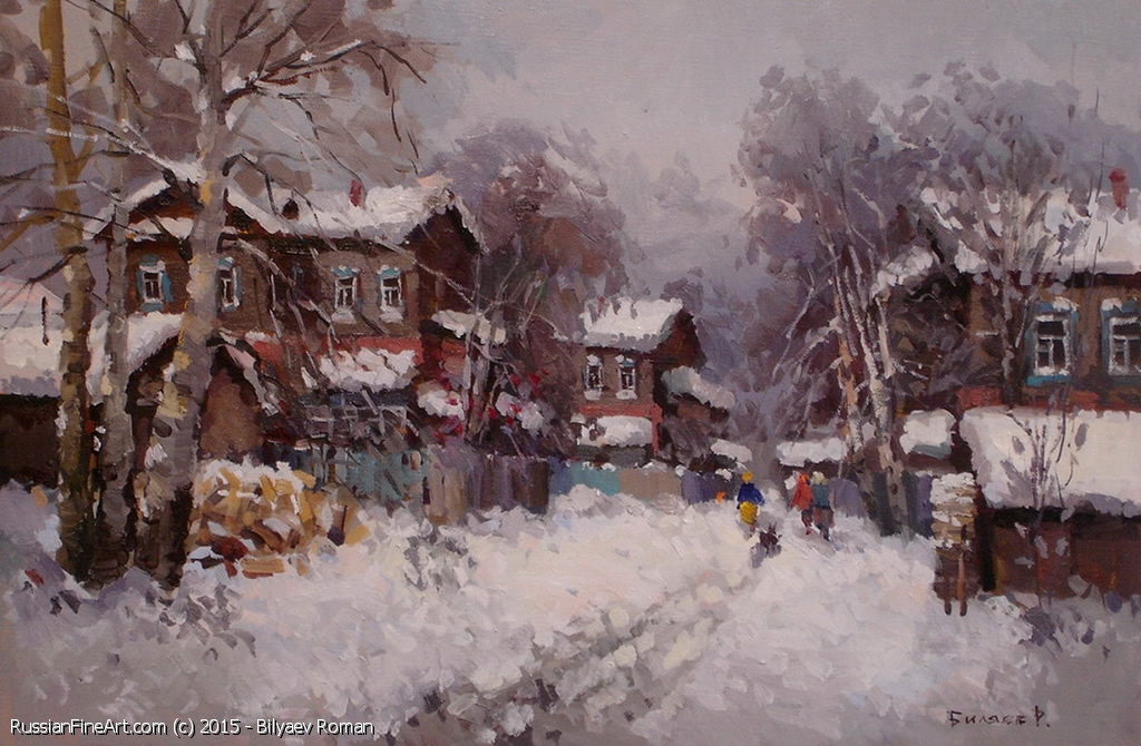 Siberian Village - oil, canvas
