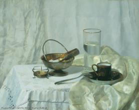 Coffee And A Glass Of Water - oil, canvas