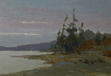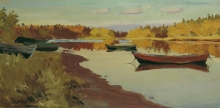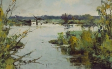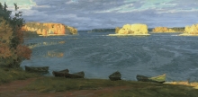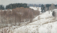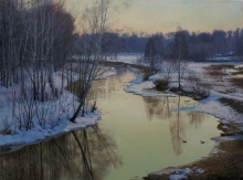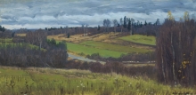 The Velikaya River. Spring. Sketch - oil, cardboard